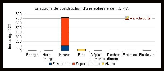 Rien que pour l’extraction des terres rares, il faut manipuler des tonnes et des tonnes de terre pour extraire quelques grammes du précieux minerai et cela se fait avec de gigantesques engins de chantier, sans compter l'extraction et la purification car ces terres rares ne se trouvent pas à l'état pur,sans compter la pollution et les ressources en eau. Pour fabriquer les 1500 tonnes de béton du socle,il faut brûler des quantités colossales de matière première dans des fours. Idem pour les centaines de tonnes d’acier. Une éolienne ne produira jamais autant d’énergie verte pendant toute sa durée de vie qu’elle n’aura consommé d’énergie carbonée pour la construire et la mettre en place,donc le bilan carbone d’une éolienne est négatif. Mais le plus aberrant est qu'on fait tourner des centrales à gaz,à charbon ou fioul pour compenser car les éoliennes ne tourne ni si le vent est absent ou trop faible, ni s'il est tros fort car risque de casse des pales.De plus,le facteur de charge, c’est-à-dire la production réelle par rapport à la capacité maximale n'est que de 22 % quand elle est neuve, mais à cause de l’usure du matériel et de la déformation des pales, il tombe à 10 % au bout de 15 à 20 ans. Donc plus d'éoliennes égal plus d’énergies fossiles. Les allemands ont rouvert de gigantesques mines de lignite qui, en plus, produisent des particules fines qu'on retrouvent jusque dans le Bassin parisien. Comble du paradoxe,l’Allemagne a dépensé 500 milliards d’euros pour les énergies vertes,sans baisse de la production de gaz à effet de serre.