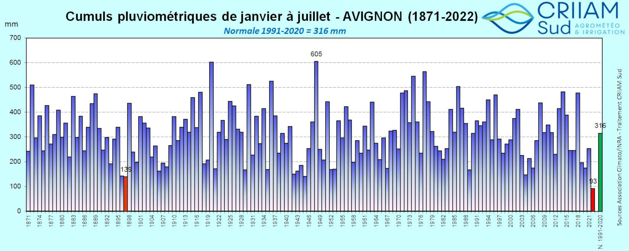 On se souvient de la sécheresse de 2003 et dans une moindre mesure de 2022,moins de celle de 1976 qui était vraiment catastrophique.Mais la plupart d'entre elles sont pénibles dans la mesure ou elles peuvent entrainer des restrictions d'eau généralement localisées.Elles sont surtout fâcheuses pour l'agriculture mais sans gravité si elles ne durent pas plusieurs années.De la à prédire la généralisation inévitable de celles-ci dans le futur comme le faisait les nostradamus du climat il y a un pas .Encore une de leurs nombreuses erreurs.Un graphe vaut mieux qu'un long discours!